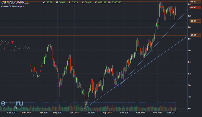 Ситуация на нефтяном рынке снова начинает зависеть от политики. Признание Трампом Иерусалима столицей Израиля может создать напряженность на Ближнем Востоке в любой момент, и рост котировок последние два дня, очевидно, отражает данное беспокойство.