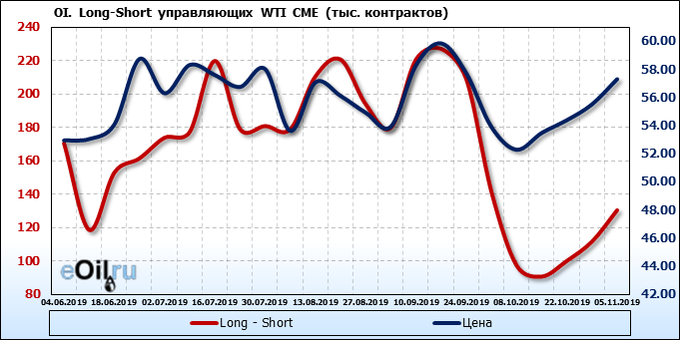 Смотрим на объемы открытого интереса управляющих. Вы должны учитывать, что это данные трехдневной давности (за вторник текущей недели), они же и самые последние из тех, что публикует биржа ICE.