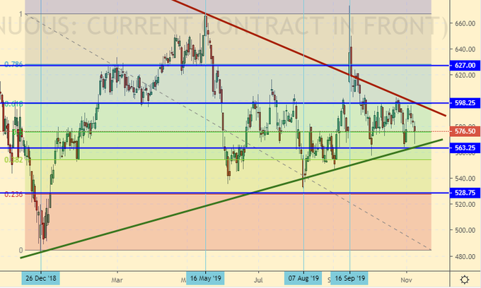 Сценарий роста: рассматриваем декабрьский фьючерс, дата экспирации 12 декабря. Продолжим придерживаться мнения, что покупать сейчас безопаснее. Пока 560.0 вниз не пробили, будем держать лонги.