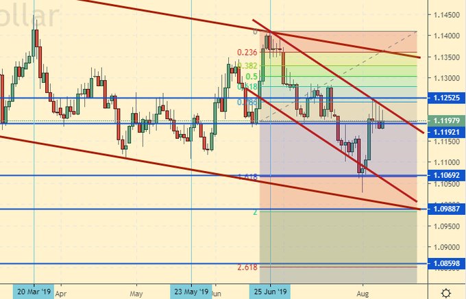 Сценарий падения: это шорт. Будем тут продавать, рассчитывая на то, что рынку так и не удастся подняться выше 1.1250. Внизу у нас много чего интересного, в том числе и 1.0860.