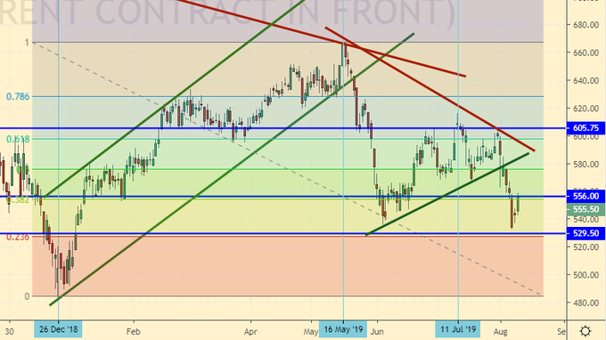 Поддержка – 529.50. Сопротивление – 605.75.