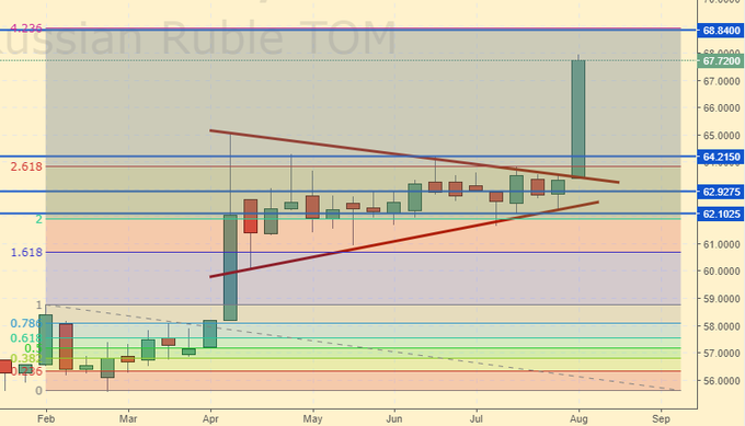 Сценарий падения: секта свидетелей отметки 60.00 заметно поредела на прошлой неделе. К данному уровню рубль вернется еще не скоро. Тем не менее, тактические продажи от 69.00 с целями на 65.00 возможны. Если в ЦБ не совсем простой народ сидит, то уровень 70.00 надо аккуратно защищать несколько дней, чтобы не допустить паники. Подсказываю ЦБ: раз такое дело, то не давайте расти доллару пару недель выше 70.00. Иначе все продолжится турецкой лирой, а закончится венесуэльским боливаром. И уже никому не будет интересен проект продажи нефти за рубли. Так как за то, что не понятно сколько будет стоить завтра контракты не заключают. Это надо было делать в сальные 2000-е. Резко и внезапно. И было бы очень патриотично. И все бы трудовые коллективы вас поддержали.