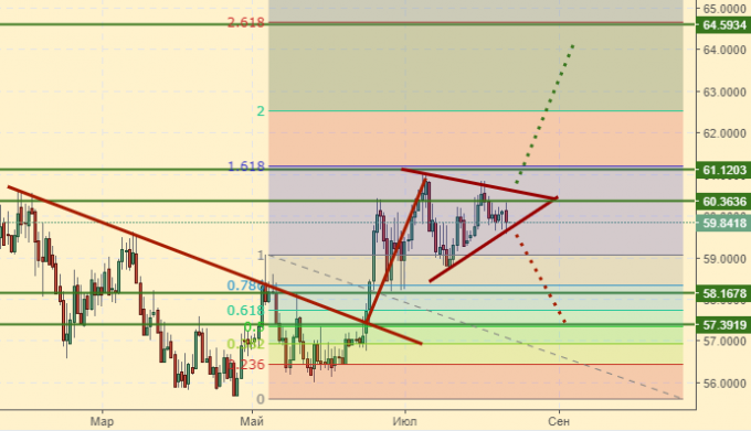 Покупка: нет. Кто в позиции, переносит стоп на 59.55.