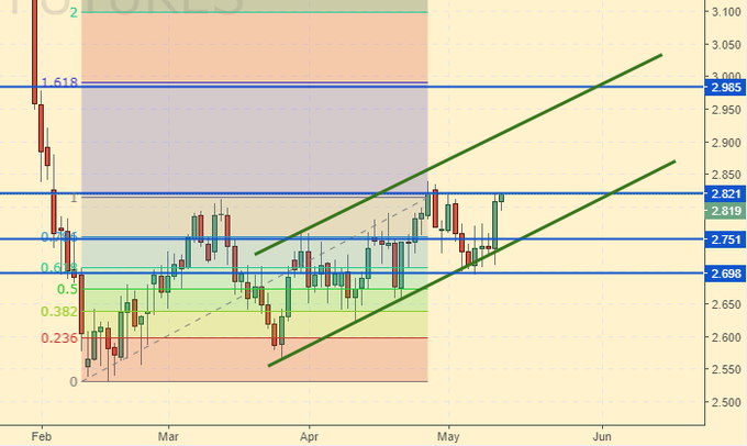 Сценарий роста: рассматриваем июньский фьючерс с датой экспирации 29 мая. Неплохо. Неплохо для тех, кто покупал от 2.70, как и предлагалось. Теперь держим позиции и мечтаем о 5.00.