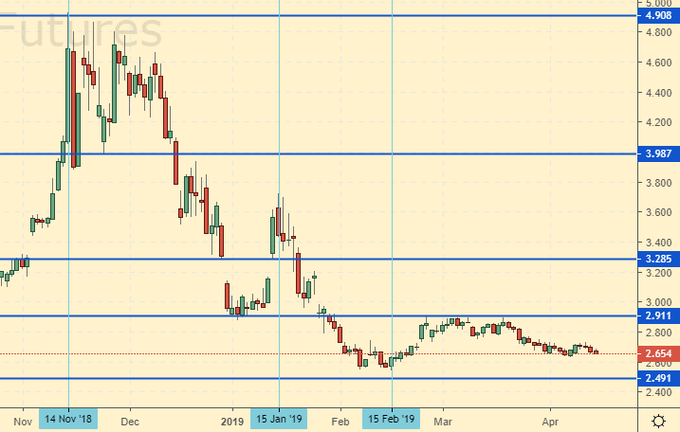 Сценарий роста: рассматриваем майский фьючерс с датой экспирации 26 апреля. Очень грустная бычья картинка. Покупатели весьма робко себя ведут, что грозит рынку проходом цен под 2.50. не покупаем.