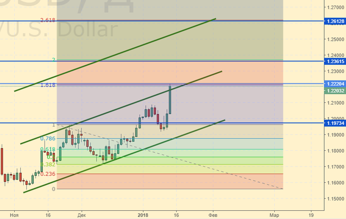 Сценарий роста: да. Но мы хотели бы добавить на 1.1875. Как же так, сэр? Точнее, херр Евро. Хорошо, что мы стоим от 1.1700 вверх и нас все это только радует, но хочется еще и еще, еще и еще, правда? Ненасытные вы мои. Теперь подтягиваем стоп-ордера под 1.2000. Успокаиваемся, капаем валерьяночку, ждем. К 1.2000 будет откат в том случае, если пятничный рост был легкой паранойей.  Заседание ЕЦБ 25-го января. Вот и посмотрим нужен ли Европе крепкий евро. Только вот у них итак ставки на нуле.