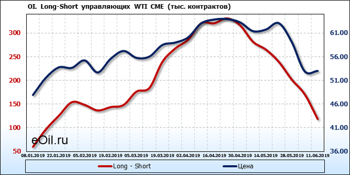 Смотрим на объемы открытого интереса управляющих. Вы должны учитывать, что это данные трехдневной давности (за вторник текущей недели), они же и самые последние из тех, что публикует биржа ICE.