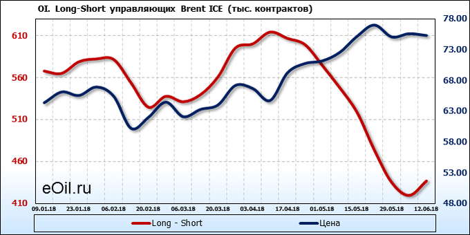 Смотрим на объемы открытого интереса управляющих. Вы должны учитывать, что это данные недельной давности, они же и самые последние из тех, что публикует биржа ICE.