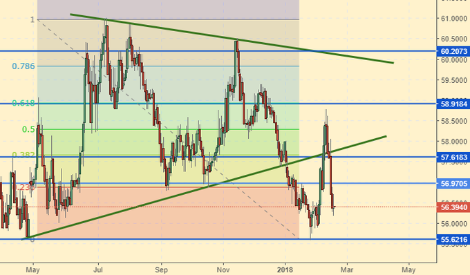 Сценарий падения: что это такое? Это деньги, возвращающиеся в Россию под угрозой санкций? Да, нефть немного восстановилась, но… Приходится верить своим глазам. Где же тут продать доллары? Фраза какая-то… Ладно. Итак, где будем продавать доллары и покупать рубли: при откате к 57.80, вряд ли раньше.