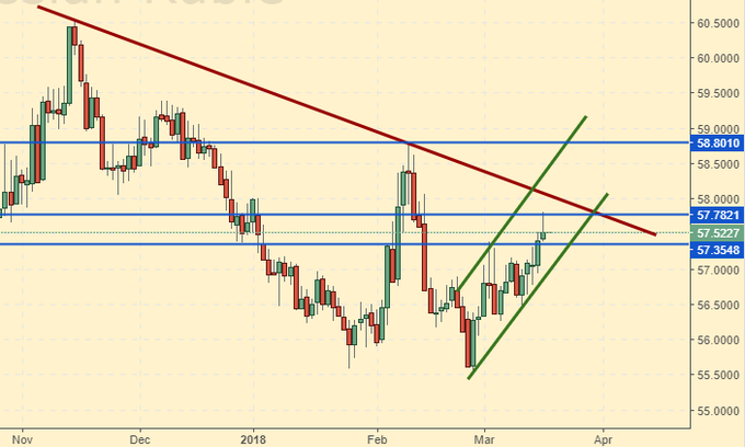 Сценарий падения: можно констатировать, что рубль не пережил интриги выборов и английских сплетен. Пока мы под 58.00 шансы на падение доллара сохраняются, но картинка для рубля все менее позитивна.