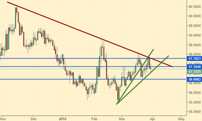 Поддержка – 56.69. Сопротивление – 57.35 (57.78).