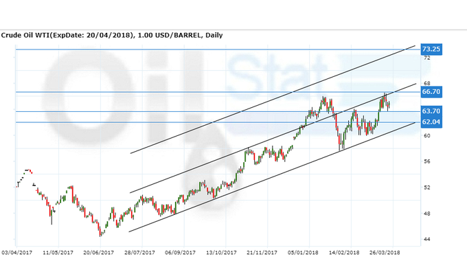 Сценарий роста: рассматриваем майский фьючерс, дата экспирации 20 апреля. Покупатели пока находятся в позиции, но поджимают стоп-ордера. История с биотопливом в США и поддержкой Трампом сельхоз производителей может несколько надавить на ожидания рынка и роста цен выше 66.70 мы так и не увидим.