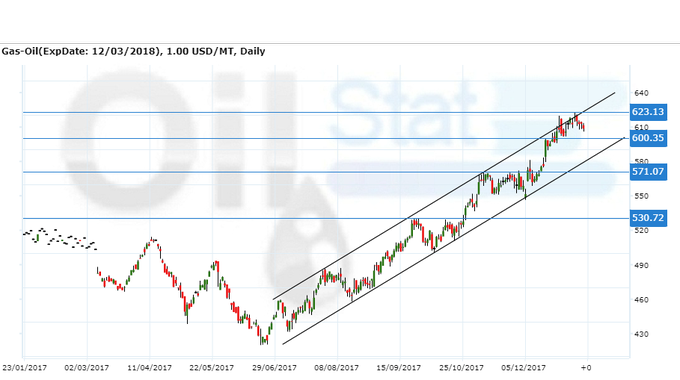 Сценарий роста: рассматриваем мартовский фьючерс, дата экспирации 12 марта.  Скорее всего на различных индикаторах дивергенции уже. Вниз надо идти, да нефть пока не пускает. Ничего, пустит. Уровень 600.00 можно считать триггером. Пока мы над ним, шансы на рост сохраняются.