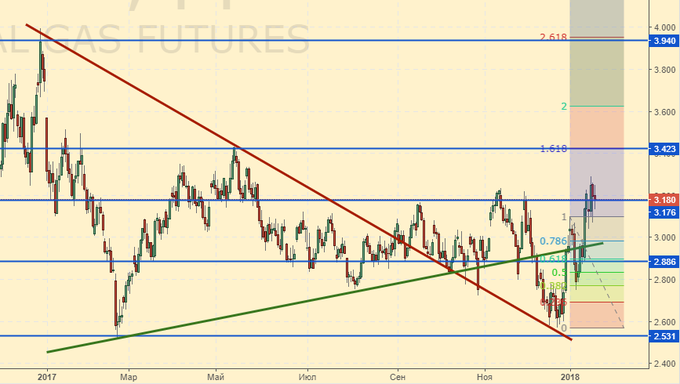 Сценарий роста: рассматриваем февральский фьючерс с датой экспирации 29 января. Неужто мы показали полугодовой максимум. Я уж думал не увижу никогда более 3.20. Аж слеза скупая по щеке поползла, как узрел. Будет возврат к 3.00 можно купить.