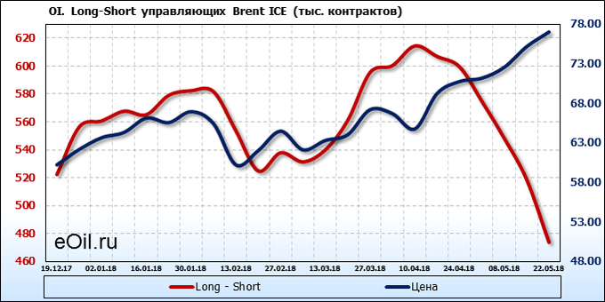 Смотрим на объемы открытого интереса управляющих. Вы должны учитывать, что это данные недельной давности, они же и самые последние из тех, что публикует биржа ICE.