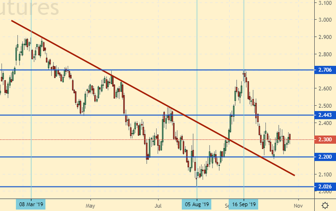 Сценарий роста: рассматриваем декабрьский фьючерс с датой экспирации 26 ноября. Продолжаем удерживать лонги. Впереди зима. Рост запасов газа в США идет по графику, но сам факт его прекращения с наступлением холодов должен поддержать цены.