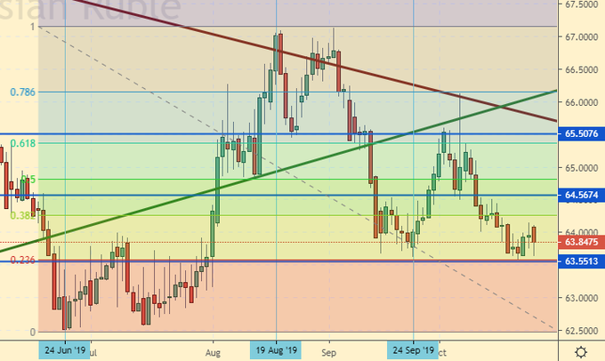 Сценарий роста: после снижения ставки ЦБ РФ на 0.5% игроки попытались продавить вниз 63.50, но у них ничего не получилось. Если простоим еще понедельник и вторник, шансы на рост усилятся. В среду заседание ФРС США, могу быть продергивания вверх – вниз различного рода. Сохраняйте концентрацию.