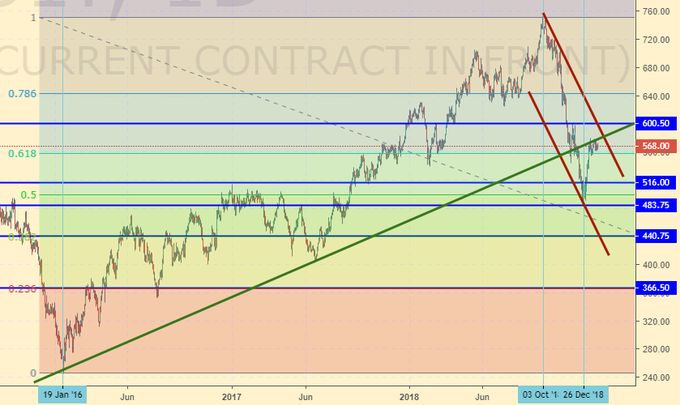 Продажа: при касании 598.0. Стоп: 611.0. Цель: 440.0. Или смотрим на индикаторы и пытаемся продать из текущего района. Кто в позиции, держите стоп на 611.0. Цель: 440.0.