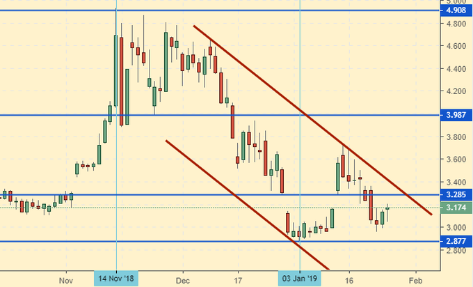 Сценарий роста: рассматриваем мартовский фьючерс с датой экспирации 26 февраля. Стоп на 3.03 уничтожен. Что теперь? Ждем роста выше 3.30 и покупаем снова.