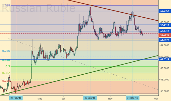 Сценарий роста: опираясь на технику, продолжаем считать, что возможно продолжение укрепления рубля. Разговоров о том, что с февраля ЦБ для Минфина продолжит скупать валюту пока остаются только разговорами. Мы может сходить и к 65.00, и к 64.00 и ниже. Тем не менее, если будет рост выше 66.50 имеет смысл рассмотреть возможность покупки.