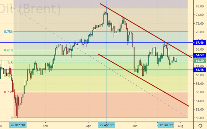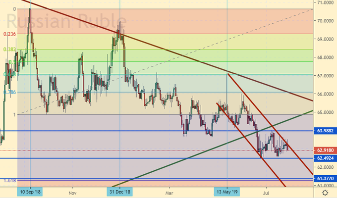Сценарий падения: если ФРС снизит ставку на 0,25% и объявит еще об одном возможном снижении в этом году, цены на товарную группу развернутся вверх, рубль получит поддержку от нового витка роста цен на нефть и пойдет к 60.00.