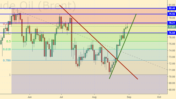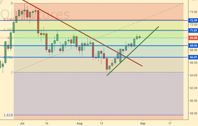 3 сентября в США праздник День Труда. Биржи закрыты. Быки по нефти пока прекратили давление, но остались на момент закрытия сессии едва ли не на максимумах.