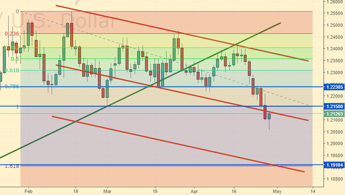 Сценарий роста: все, что может помочь евро в такой ситуации, это отказ ФРС США 2-го мая повышать ставку. Рынок хочет оказаться на 1.1910 и не в наших силах ему помешать сделать это.