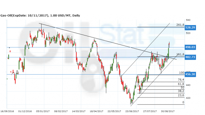 Сценарий роста: рассматриваем ноябрьский фьючерс с датой экспирации 10 ноября. Если избавить свой мозг от предрассудков, то можно увидеть, что рынок закрылся выше психологически важного уровня 500.00. Кроме того, пробит падающий тренд. Однако, сильный уровень сопротивления – 528.00 – уже близко и соотношение прибыль/риск в данной сделке крайне низкое для покупок. Предлагаем воздержаться от входа в лонг. Есть и другие рынки.