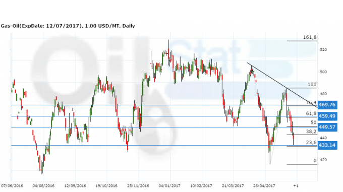 Сценарий роста: рассматриваем июльский фьючерс с датой экспирации 12 июля. Покупки от 450.00 и 440.00 были вполне оправданные, и если вы их еще не сделали, то стоит об этом задуматься. Быки будут бороться за уровень 430.00, так как если цены упадут ниже, интерес спекулянтов полностью сместиться на сторону продавцов, после чего и без того медвежий рынок станет просто падающим. Причем безвольно. Текущие уровни приемлемы для покупок.
