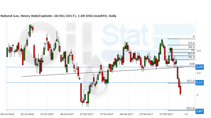 Сценарий роста: рассматриваем июльский фьючерс с датой экспирации 28 июня. Во второй половине недели покупатели решили разбежаться. Уровень 3.00 пока стоит и этим надо пользоваться для того чтобы сделать спекулятивную покупку с очень коротким стоп-ордером на 2.96. Пусть вас не смущают столь агрессивные красные свечи. На рынке товарных фьючерсов это частое явление.