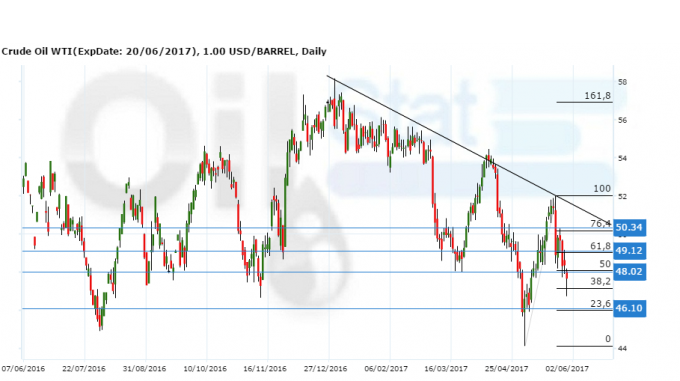 Сценарий роста: рассматриваем июльский фьючерс с датой экспирации 20 июня. Все верно, «ценам тяжело будет пройти ниже 46.00, поэтому при подходе к данной отметке имеет смысл покупать», — цитируем самих себя. Теперь, купив от 46.70 (мы рекомендовали этот уровень) – стойте вверх. В случае снижения, можно подраться и купить еще на 45.70. Стоп: 45.30. Технически у быков не плохая позиция для атаки.