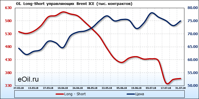 Смотрим на объемы открытого интереса управляющих. Вы должны учитывать, что это данные недельной давности, они же и самые последние из тех, что публикует биржа ICE.
