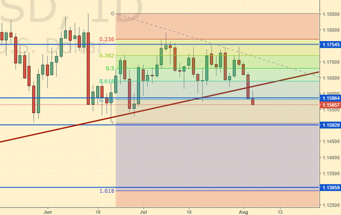 Продажа: или после падения ниже 1.1550, или при откате к 1.1630. Стоп: 1.1657. Цель: 1.1000.