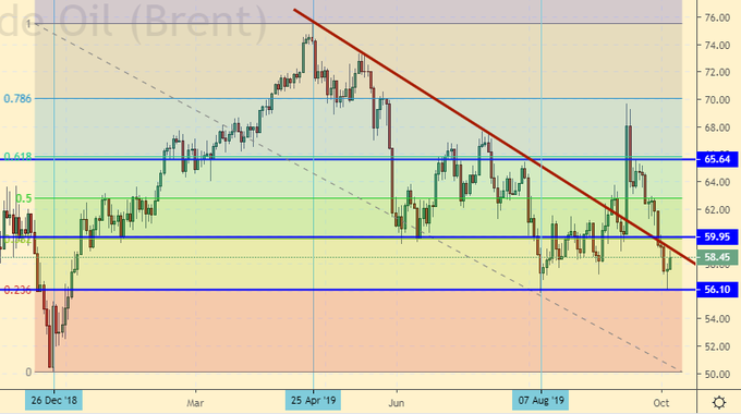 Резюме на конец пятницы: рынок труда в США остается сильным. Этот факт поддержит цены на нефть, ведь на работу надо ехать непременно на джипе. Кроме того, добыча в США не растет, продолжая находиться на 12.4 млн. баррелей в сутки. А уже конец года. Обещанных рекордов мы не видим. Флот буровых продолжает таять. На эмоциях (спекулятивном давлении), рынок может опуститься к 50.00 по Brent, но пройти глубже без новых вводных будет попросту невозможно.