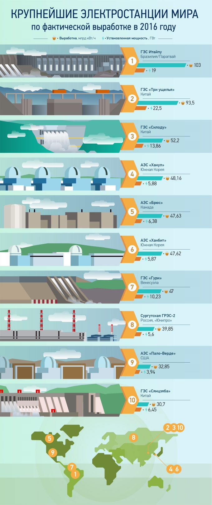 Реальная мощь: крупнейшие электростанции мира по фактической выработке в 2016 году