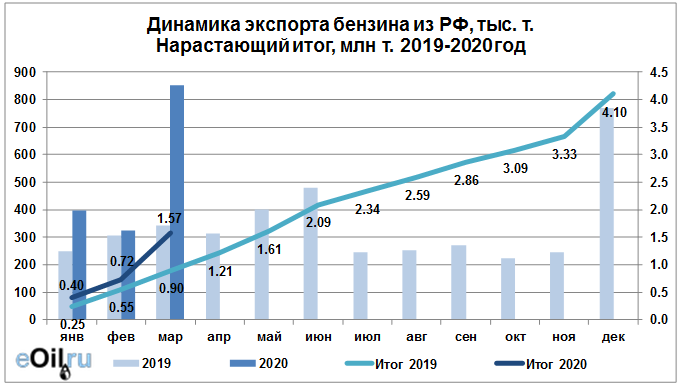 В 2020 году объем поставок бензина (92 и выше) на экспорт достиг 1574.57 тыс. тонн. Данный объем на текущий момент составляет 38% от объема прошлого 2019 года.