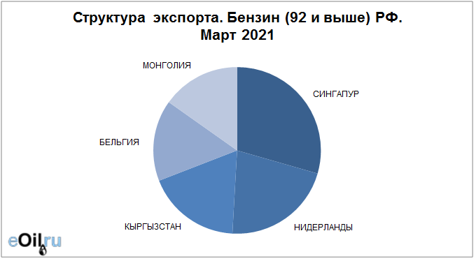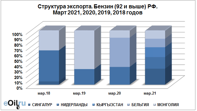 Структура экспорта бензина (92 и выше) из России с января 2021 по март 2021