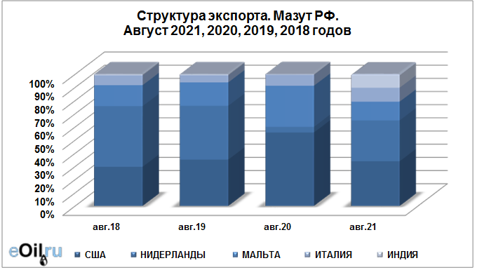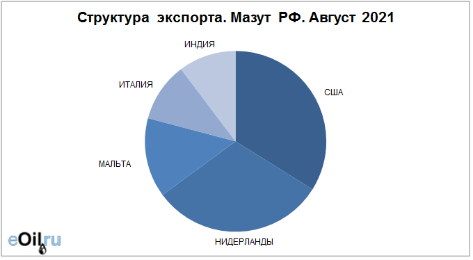Структура экспорта мазута из России за август 2021 года
