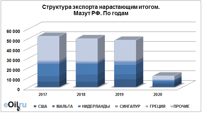 В 2020 году объем поставок мазута на экспорт достиг 11729.16 тыс. тонн. Данный объем на текущий момент составляет 24% от объема прошлого 2019 года.