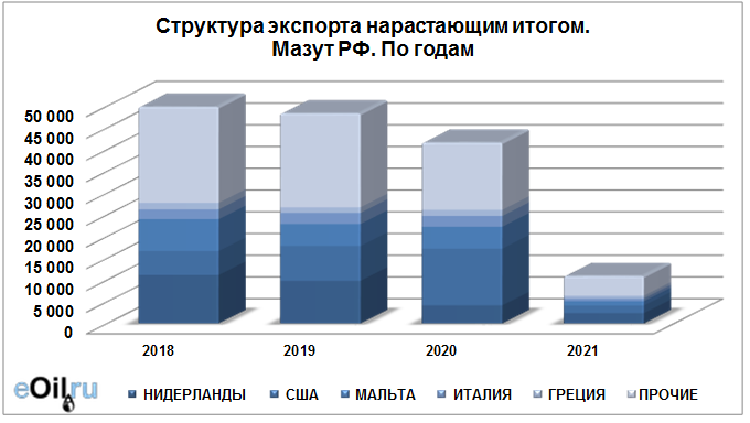 В 2021 году объем поставок мазута на экспорт достиг 10918.31 тыс. тонн. Данный объем на текущий момент составляет 26% от объема прошлого 2020 года.