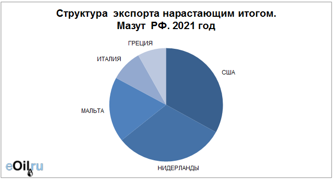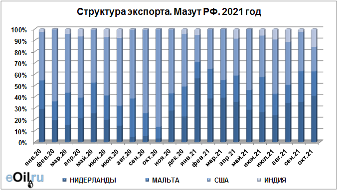 Структура экспорта мазута из России с января по октябрь 2021