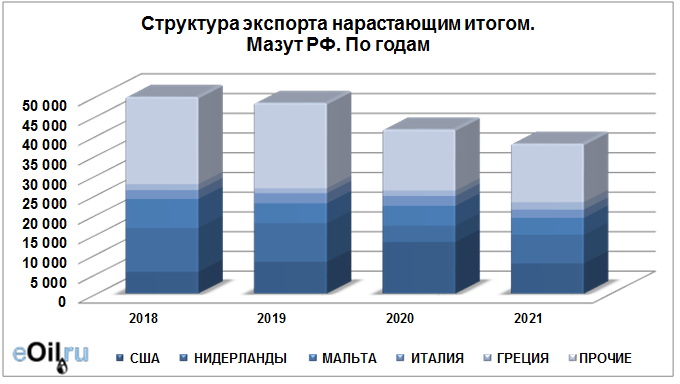Структура экспорта мазута из России нарастающим итогом по годам