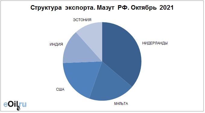 Структура экспорта мазута из России за октябрь 2021 года