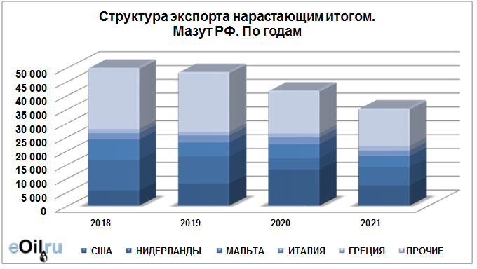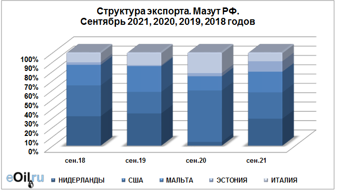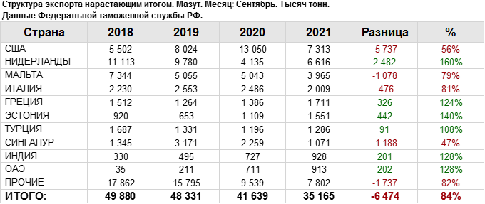 Росстат. Экспорт мазута из России на сентябрь 2021