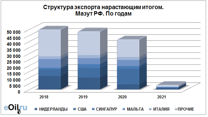 В 2021 году объем поставок мазута на экспорт достиг 3755.02 тыс. тонн. Данный объем на текущий момент составляет 9% от объема прошлого 2020 года.