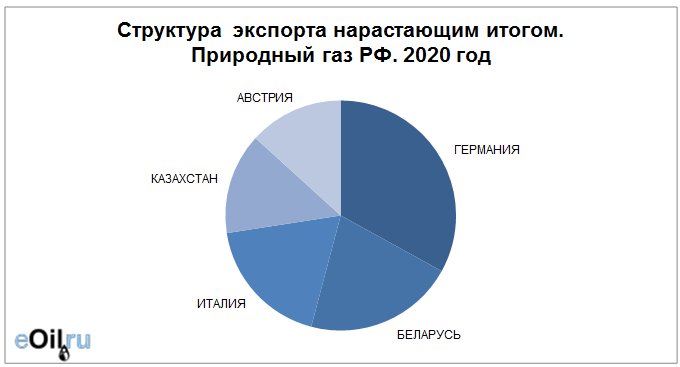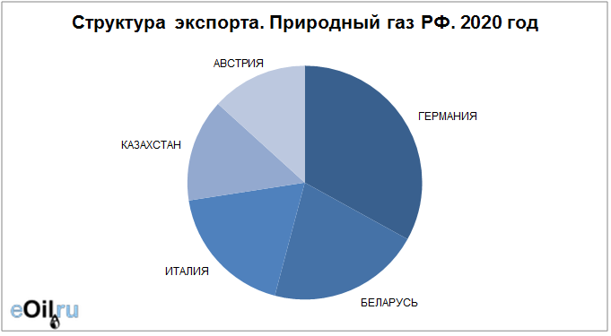 Наибольшие поставки осуществляются в Германию, объем 10.45 млрд. куб. м. За прошлый 2019 год поставки в данную страну составляли 48.03 млрд. куб. м.