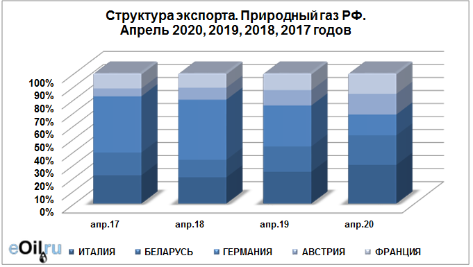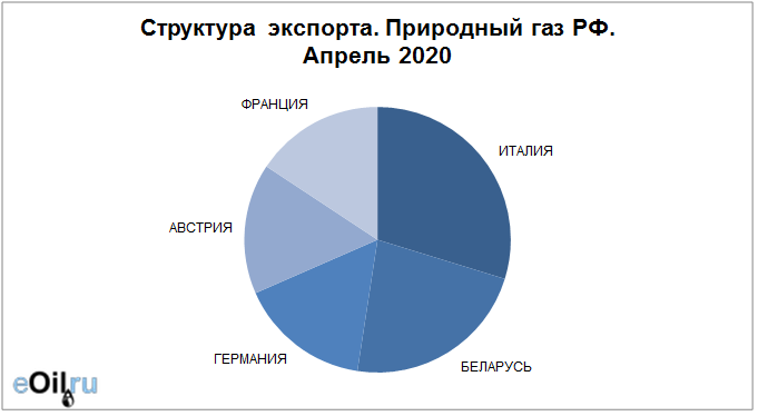 Структура экспорта природного газа из России за апрель 2020 года