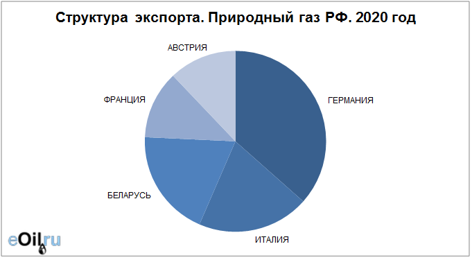 Наибольшие поставки осуществляются в Германию, объем 35.67 млрд. куб. м. За прошлый 2019 год поставки в данную страну составляли 48.03 млрд. куб. м.