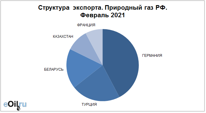 Структура экспорта природного газа из России за февраль 2021 года