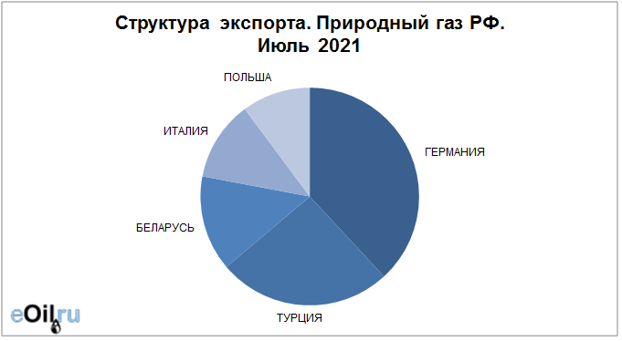 Структура экспорта природного газа из России с января 2021 по июль 2021